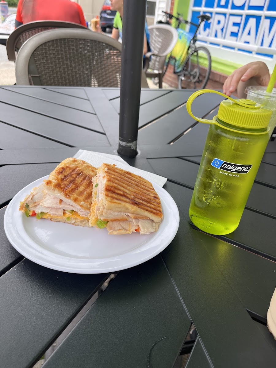 Great stop for cyclists and anyone else on the bike trail. So convenient and great smoothies for cooling down and energy boosts, as well as paninis and bowls. Indoor and limited outside seating, with a bike rack.